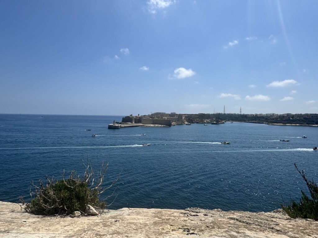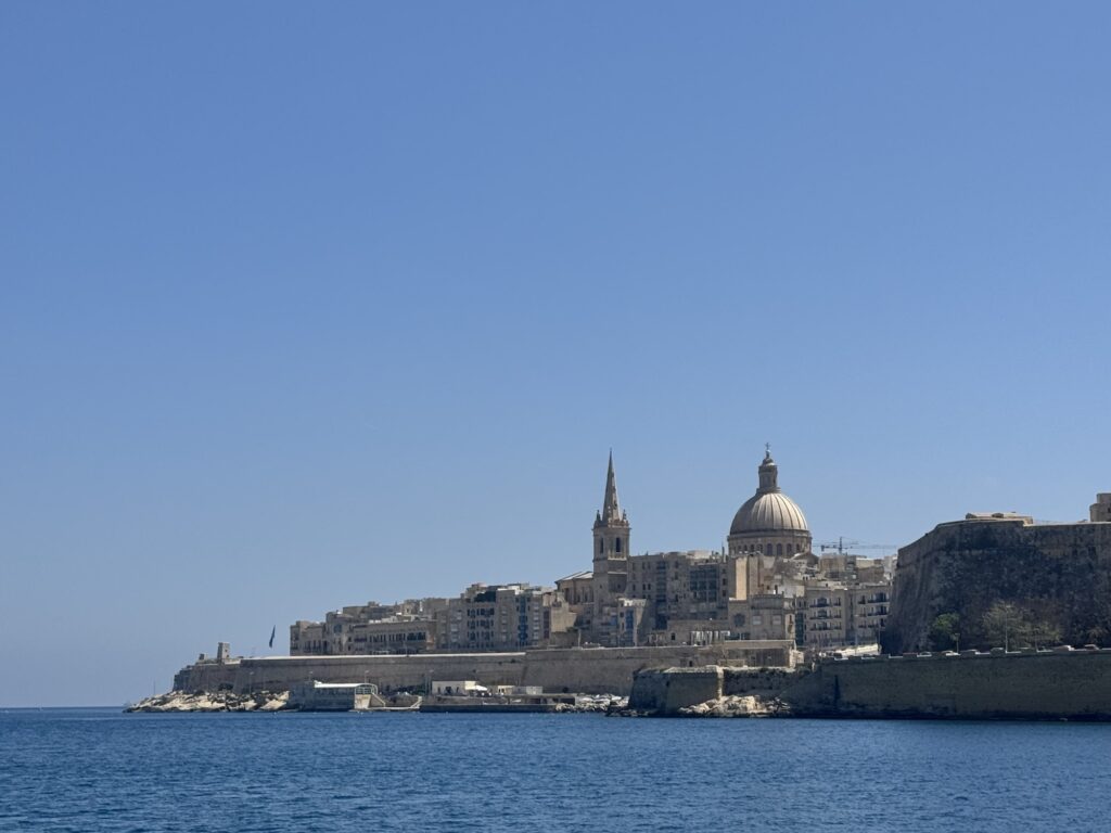 Efter besöket på fortet tog vi en resa med Hop-on Hop-off. Turen gick bland annat genom ”de tre städerna” Vittorisa, Senglea och Cospicua som är Maltas äldsta städer som grundades på 1500-1600-talet. Resa gick vidare till Marsaxlokk fiskeby och den blå grottan som är en av de mest besökta naturattraktionerna på Malta. Bästa upplevelsen är att ta en utflykt med båt till grottan, vi nöjde oss med utsikten från bussen. Tillbaka i centrala Valetta hittade vi ett ”hål i väggen” där det serverades dumplings och nudlar. Efter en god och rejäl middag var det dags att beställa en ny Bolt för att ta oss tillbaka till NOSTRA.