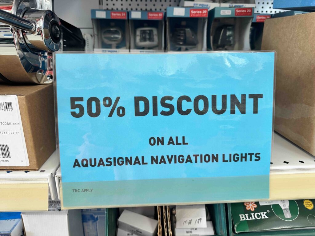 På måndag morgon påbörjade vi jagen på en ny lanterna. Vi besökte de stora marinbutikerna som låg precis utanför marinan. Tyvärr hade ingen av dem den lanterna vi letade efter så kapten fick hissas upp i masten igen och sätta din den gamla, nu upputsade. Vi får se om vi får tag på någon när vi kommer hem till Sverige. Under dagen fick vi fick hjälp av en trevlig dykare i hamnen att göra rent både propeller och botten på NOSTRA. Skönt!