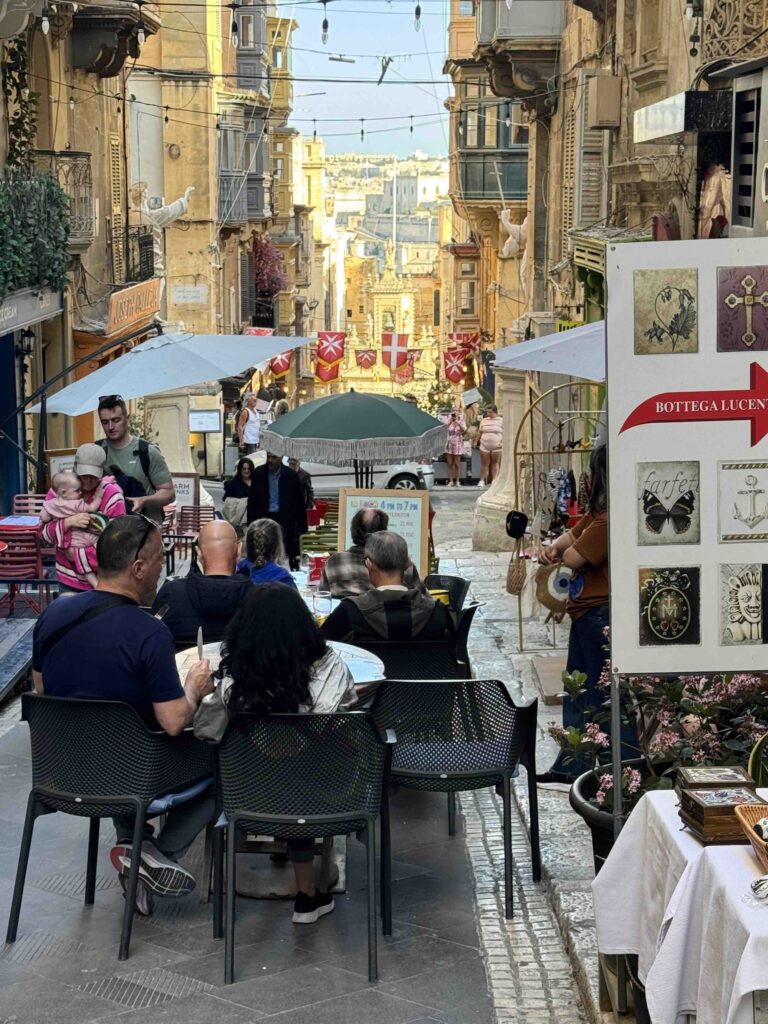 Våra tyska båtgrannar som bott på Malta sedan 1999 gav oss bra tips om vad vi skulle titta på i Valetta, och vad vi skulle undvika. Att gå eller cykla i stan var inte att tänka på på grund av den besvärliga trafiksituationen. Det var resor med Bolt som gällde. Systemet med Bolt var för övrigt perfekt, enkelt och smidigt. Framkörningen tog sällan mer än fem minuter.