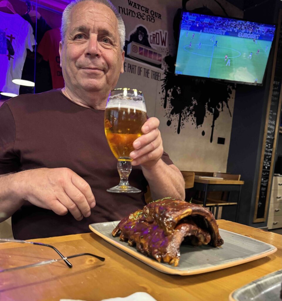 Därefter åt vi god mat på Cheeky Monkey. Gasten och kapten beställde revben och frågan är om de inte fick en hel gris 😉. Navigatören åt grillad kyckling med lemongrassås. Grymt gott! Rejält mätta tog vi en Bolt tillbaka till marinan och NOSTRA.
